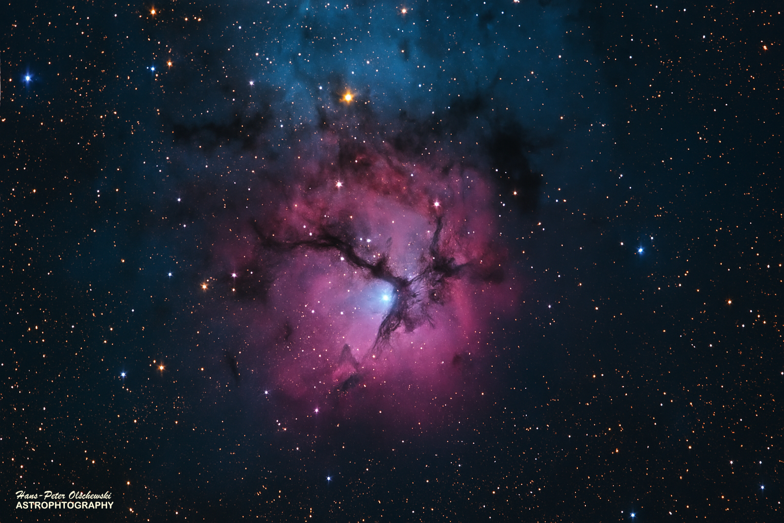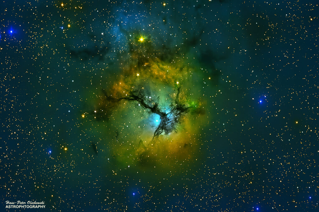 Der Trifidnebel in den Farben der Hubble-Farbpalette