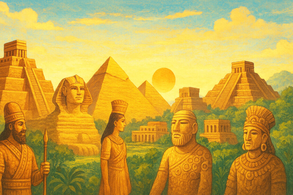 Unabhängig von diesen eurasisch-afrikanischen Entwicklungen entstanden auch auf dem amerikanischen Kontinent einzigartige Hochkulturen. Die früheste war die Caral-Supe-Kultur in Peru, die bereits um 3000 v. Chr. Pyramiden und Zeremonialbauten errichtete. In Mesoamerika gelten die Olmeken als „Mutterkultur“, bekannt für ihre riesigen Kolossalköpfe und ihre Rolle bei der Entstehung des mesoamerikanischen Kalenders. Auf ihrem Wissen bauten später die Maya auf, die durch ihre astronomischen Kenntnisse, die Verwendung der Null und ihre beeindruckenden Tempelstädte in Erscheinung traten. Weiter südlich schufen die Inka in den Anden ein gigantisches Reich, das durch ein ausgeklügeltes Straßennetz und eine komplexe Verwaltungsorganisation ohne Schrift, aber mit Hilfe der Quipu-Knotenschnüre, zusammengehalten wurde.