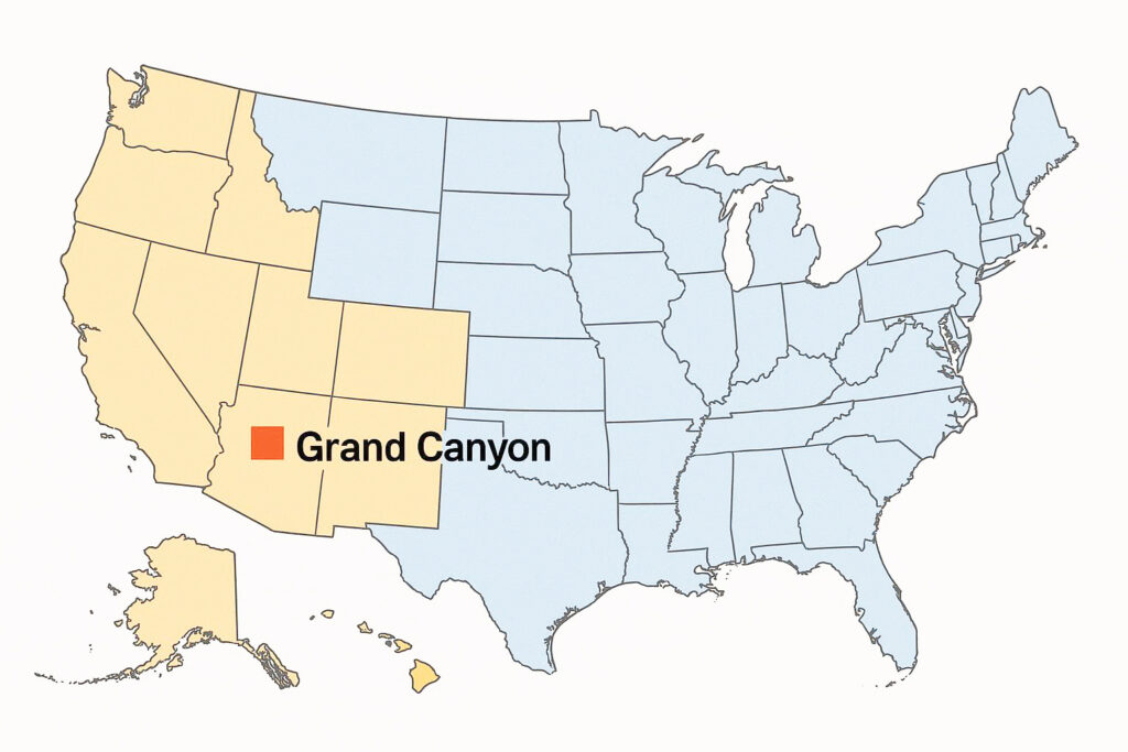 Die Lage des Grand Canyon innerhalb der USA