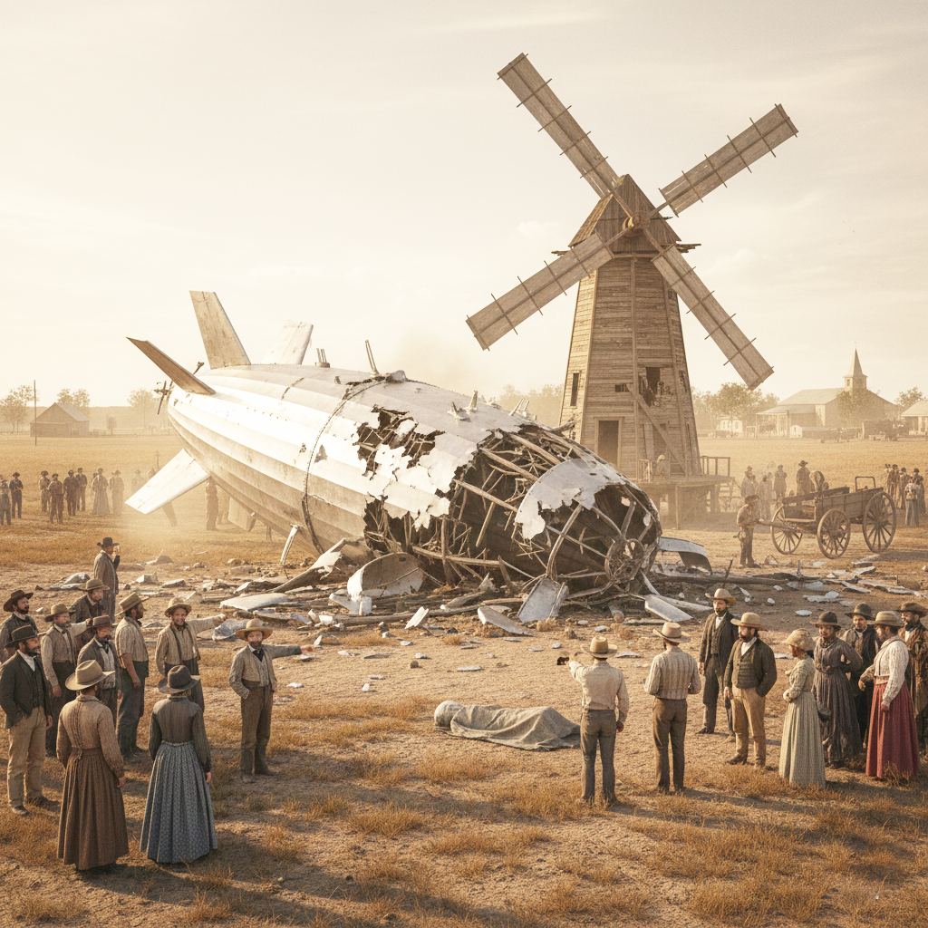 EreignisKollision eines „Luftschiffs“ mit einer Windmühle